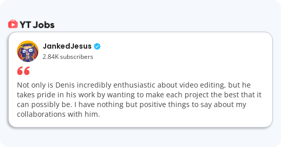 My style is heavily inspired by film and TV editors such as Joe Walker (Dune) and Kirk Baxter (Gone Girl).